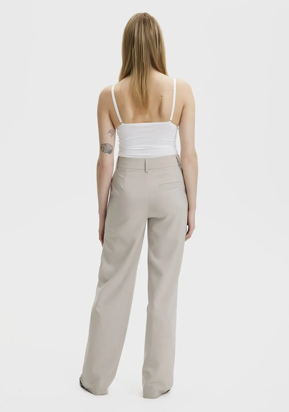 – Het model is 1.76m lang en draagt maat S