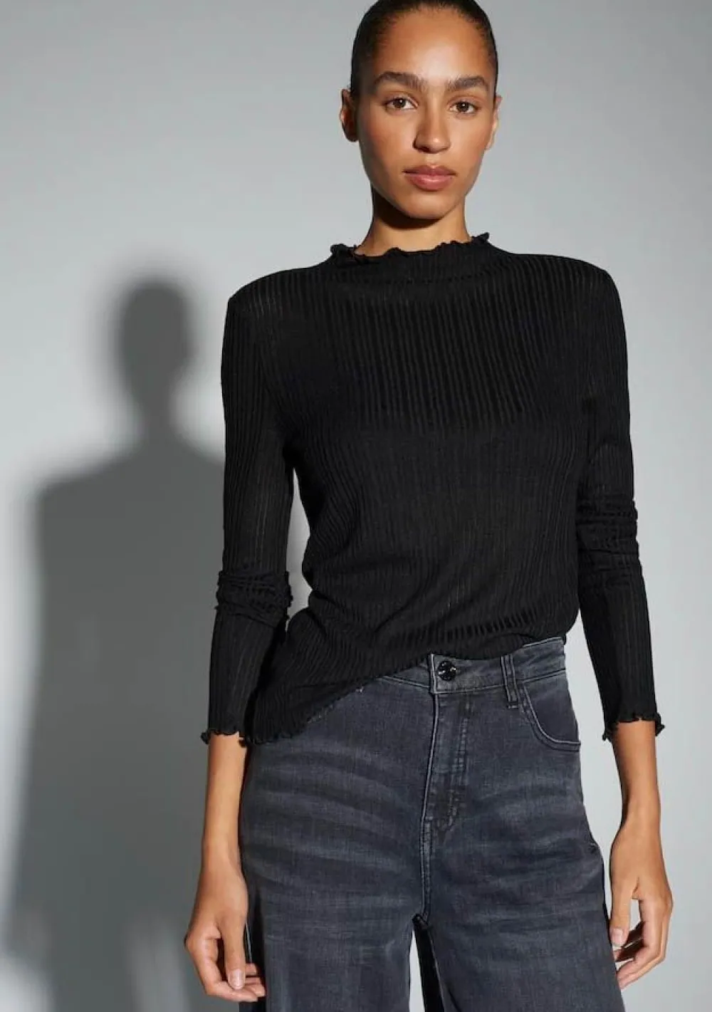 – Het model is 1.77m lang en draagt maat 36