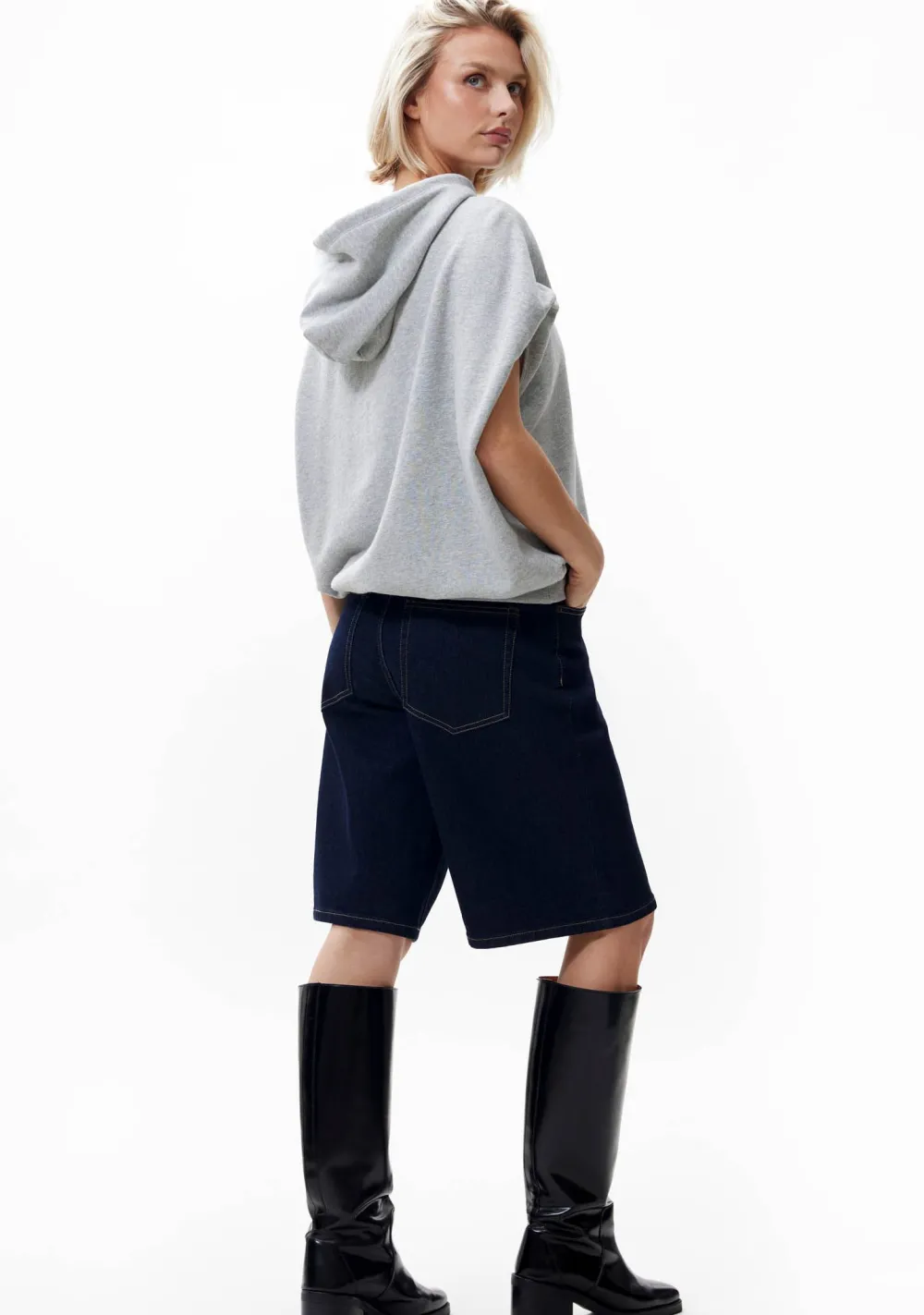 – Het model is 1.76m lang en draagt maat 36