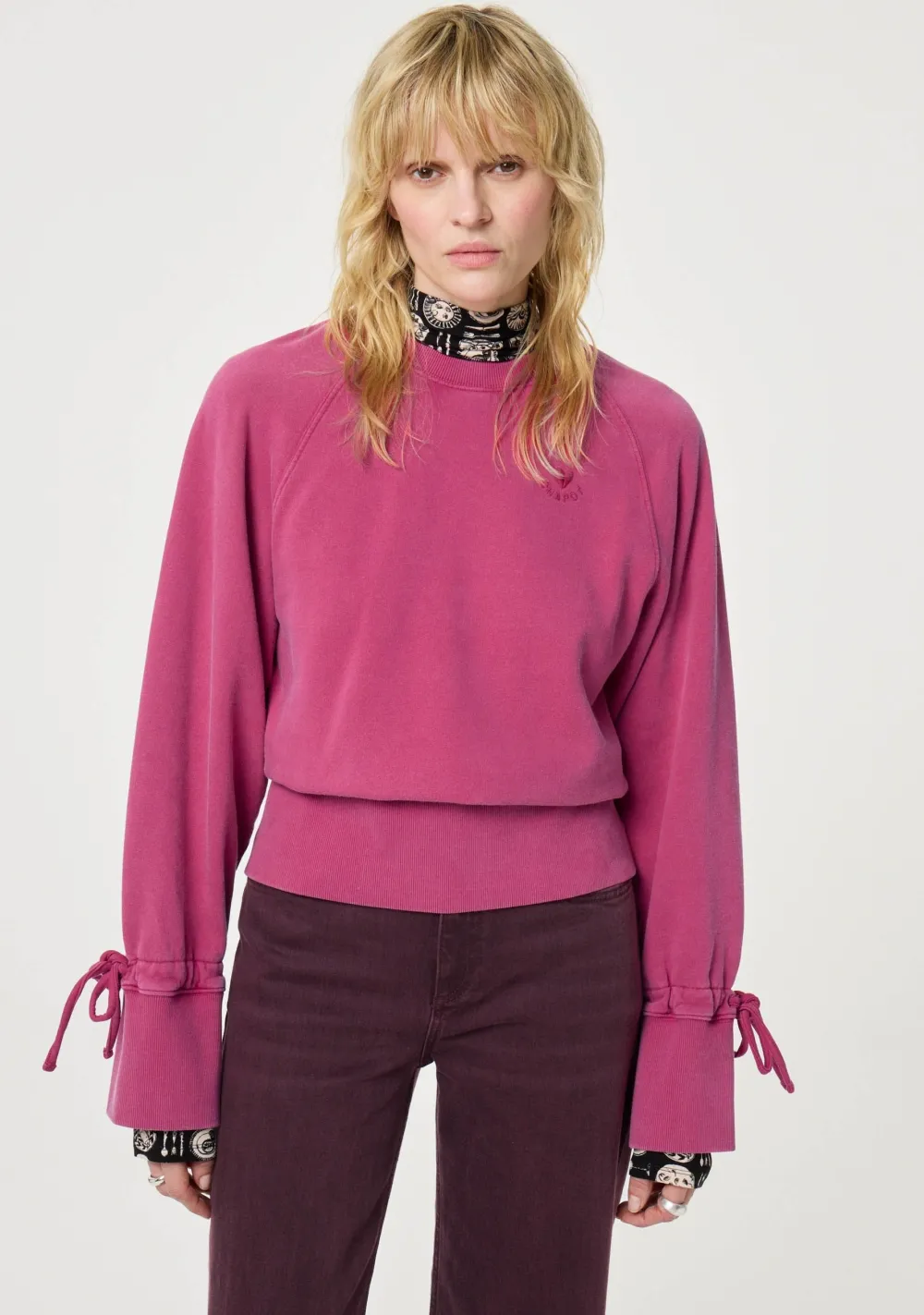 – Het model is 1.76m lang en draagt maat S
