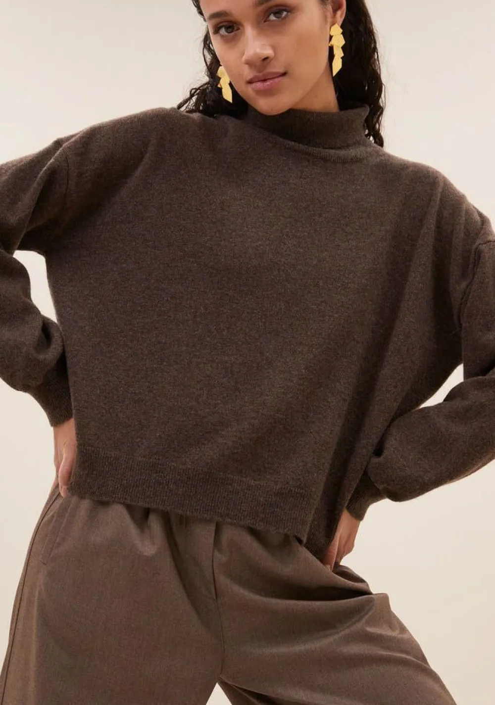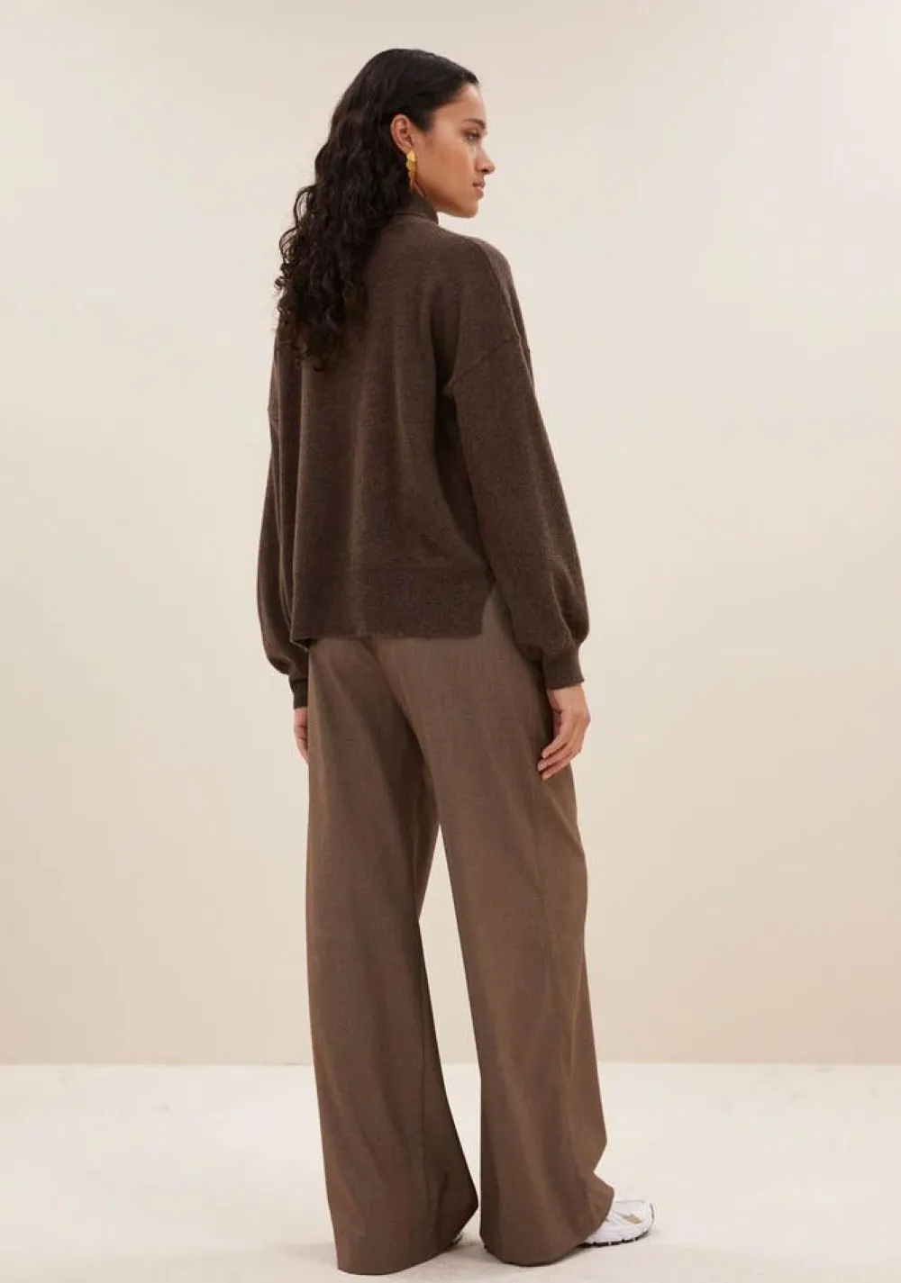 – Het model is 1.76m lang en draagt maat S