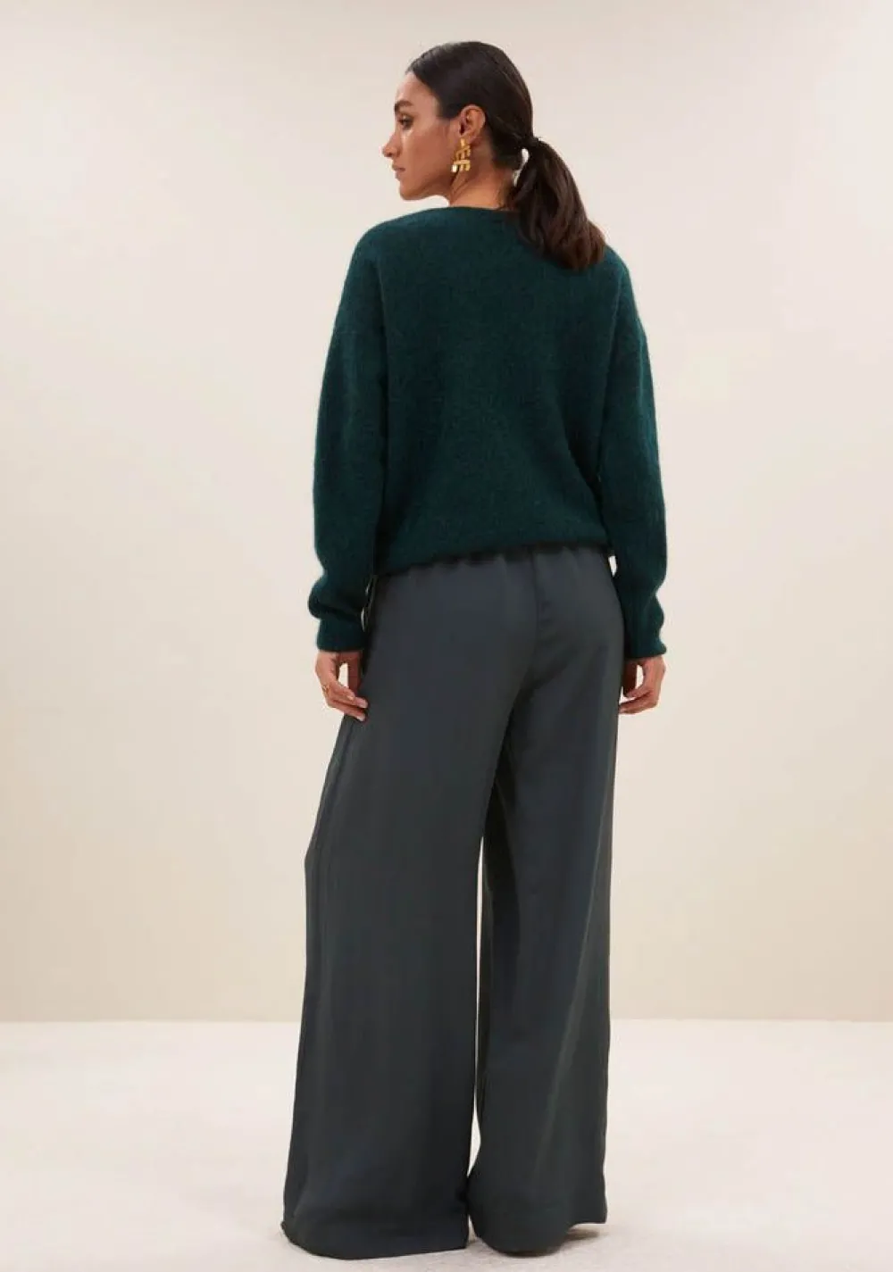 – Het model is 1.75m lang en draagt maat S