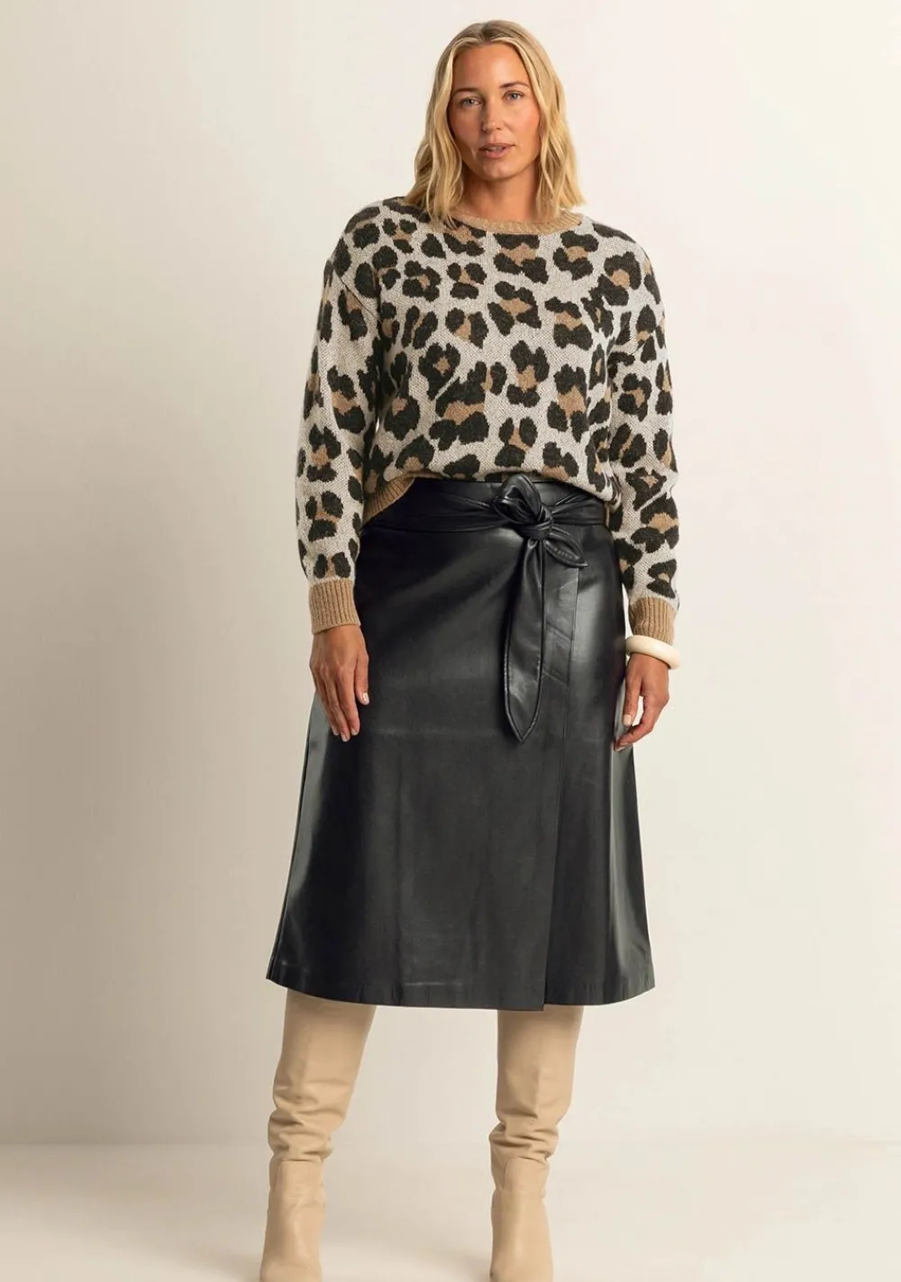 – Het model is 1.76m lang en draagt maat S