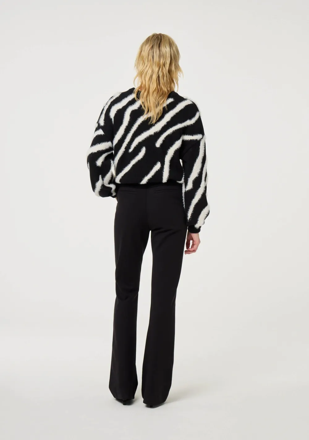 – Het model is 1.76m lang en draagt maat S