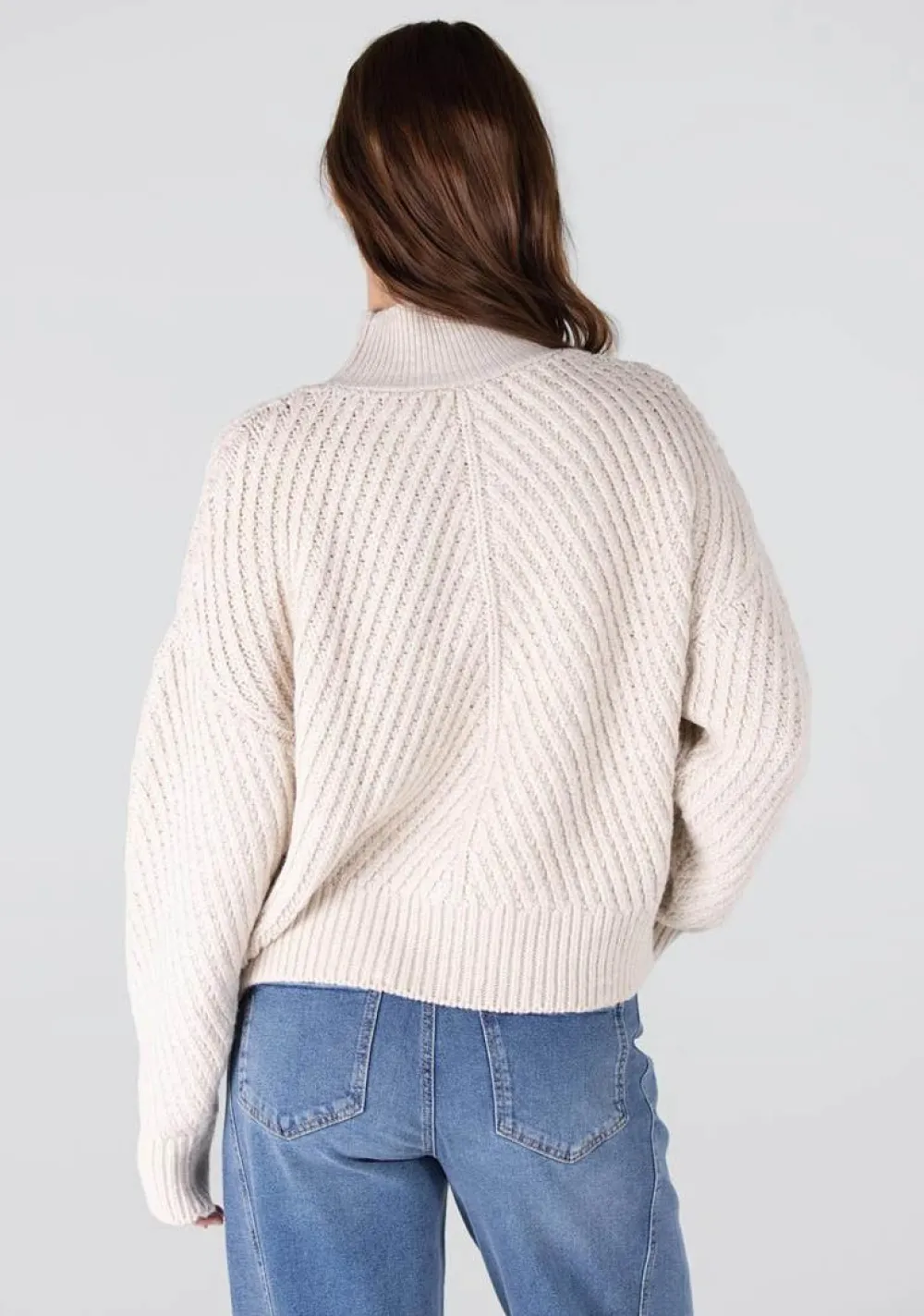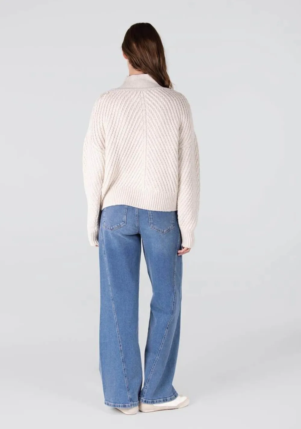 – Het model is 1.78m lang en draagt maat S