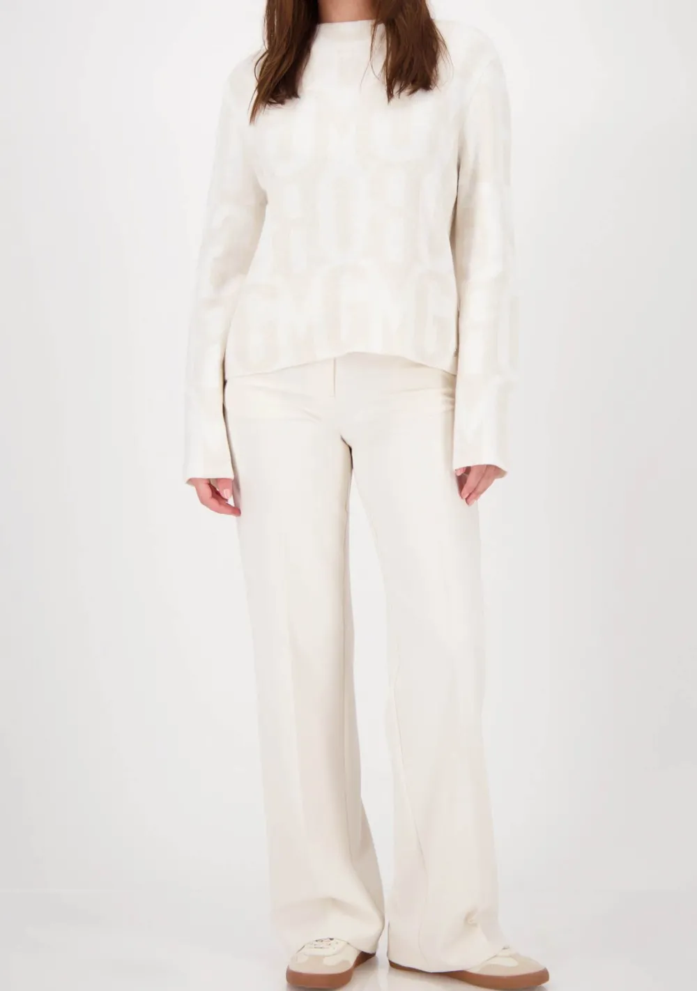 – Het model is 1.76m lang en draagt maat 36