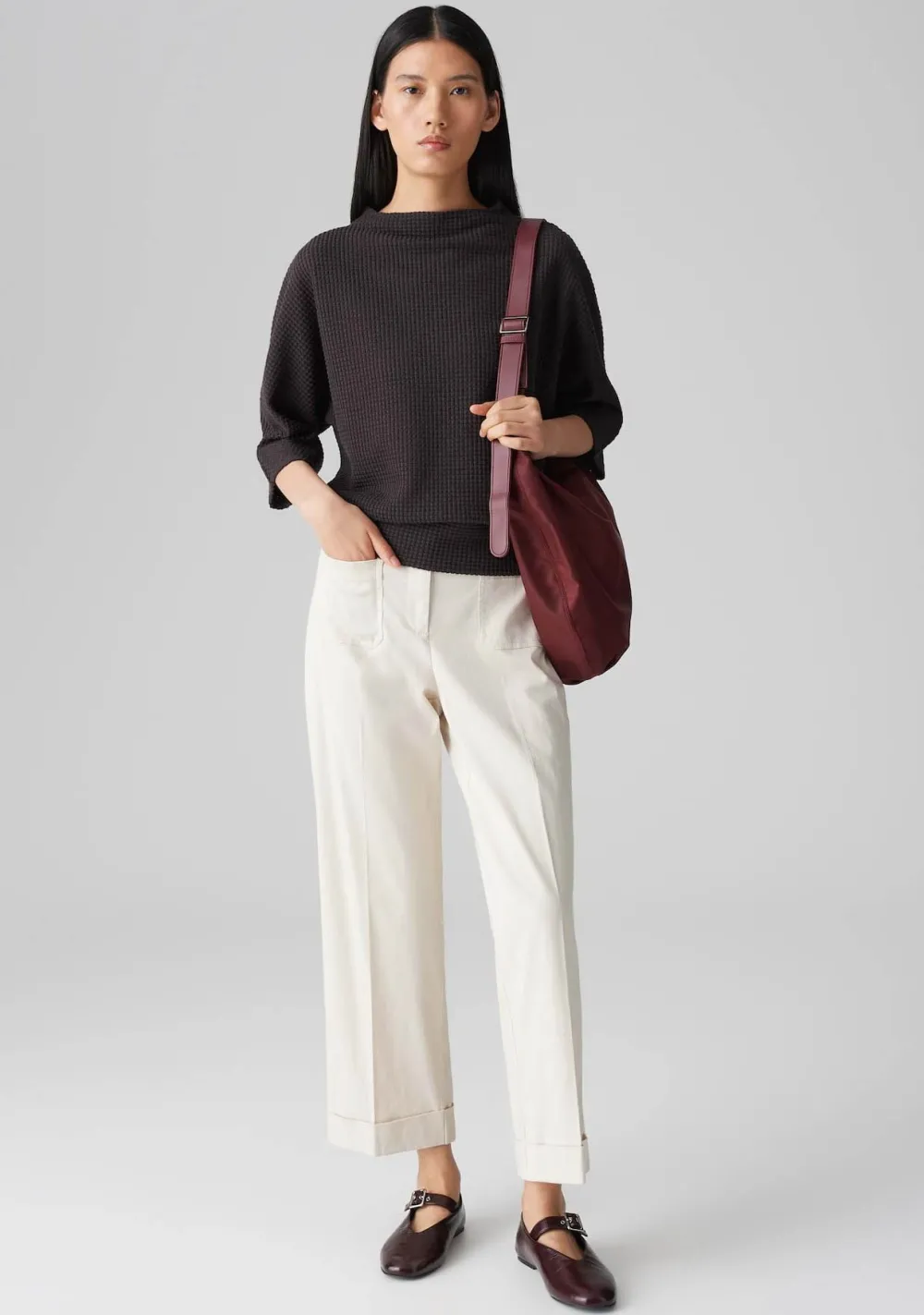 – Het model is 1.77m lang en draagt maat 36