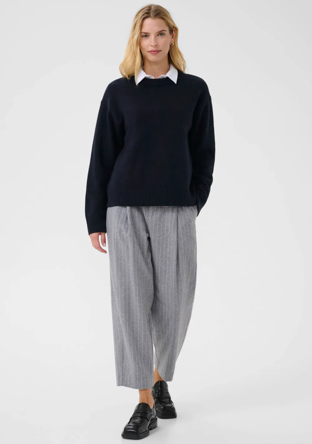– Het model is 1.76m lang en draagt maat S