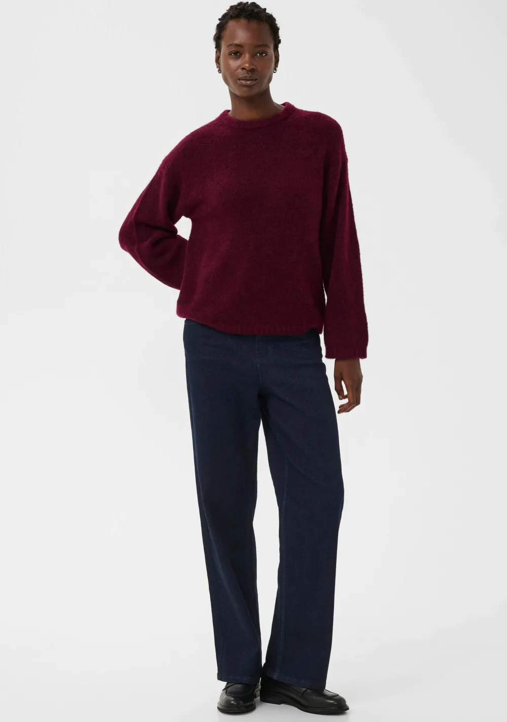 – Het model is 1.76m lang en draagt maat 36