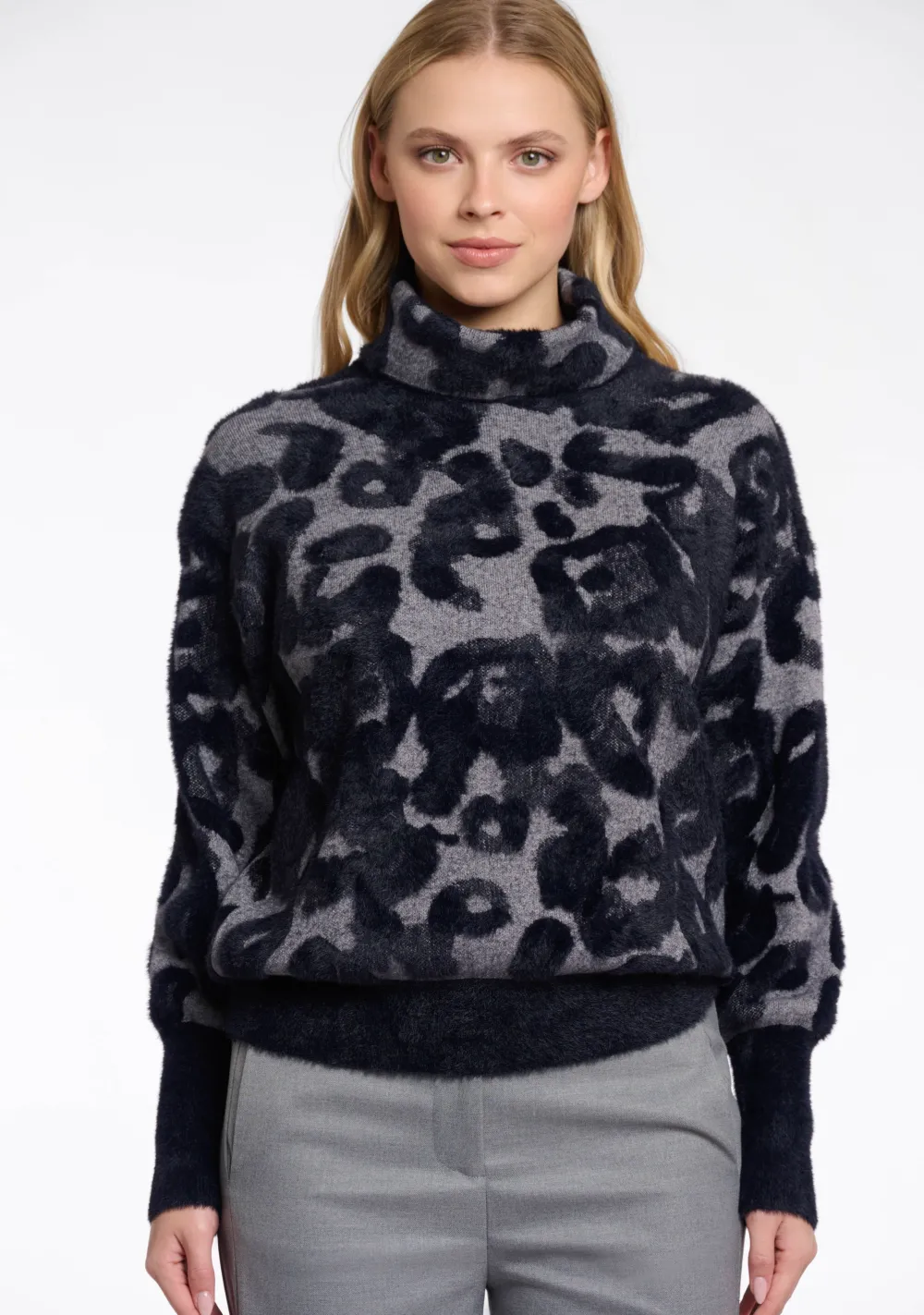 – Het model is 1.76m lang en draagt maat S