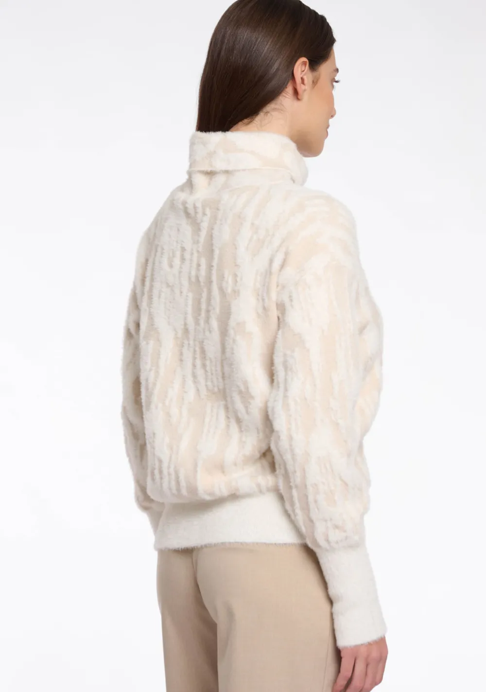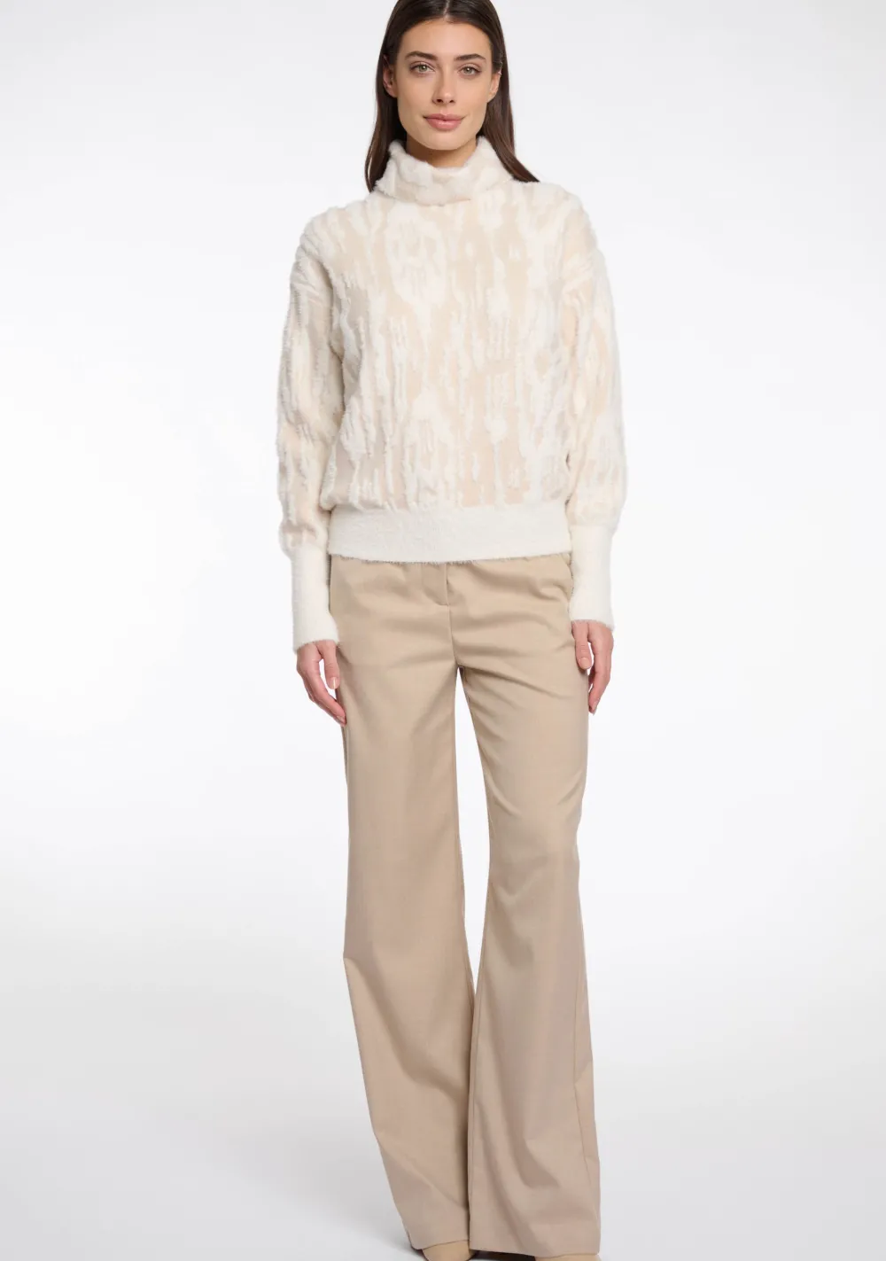 – Het model is 1.76m lang en draagt maat S