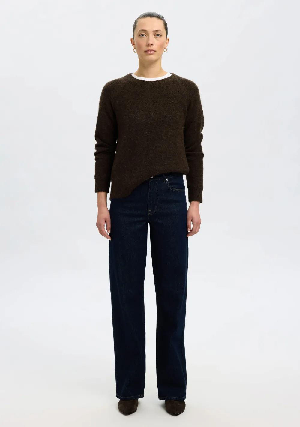 – Het model is 1.76m lang en draagt maat S