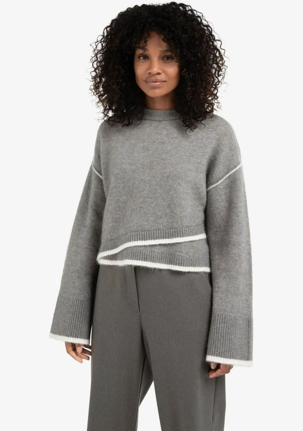 – Het model is 1.73m lang en draagt maat S