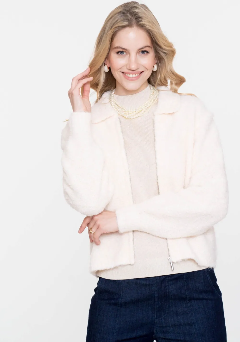 – Het model is 1.76m lang en draagt maat S