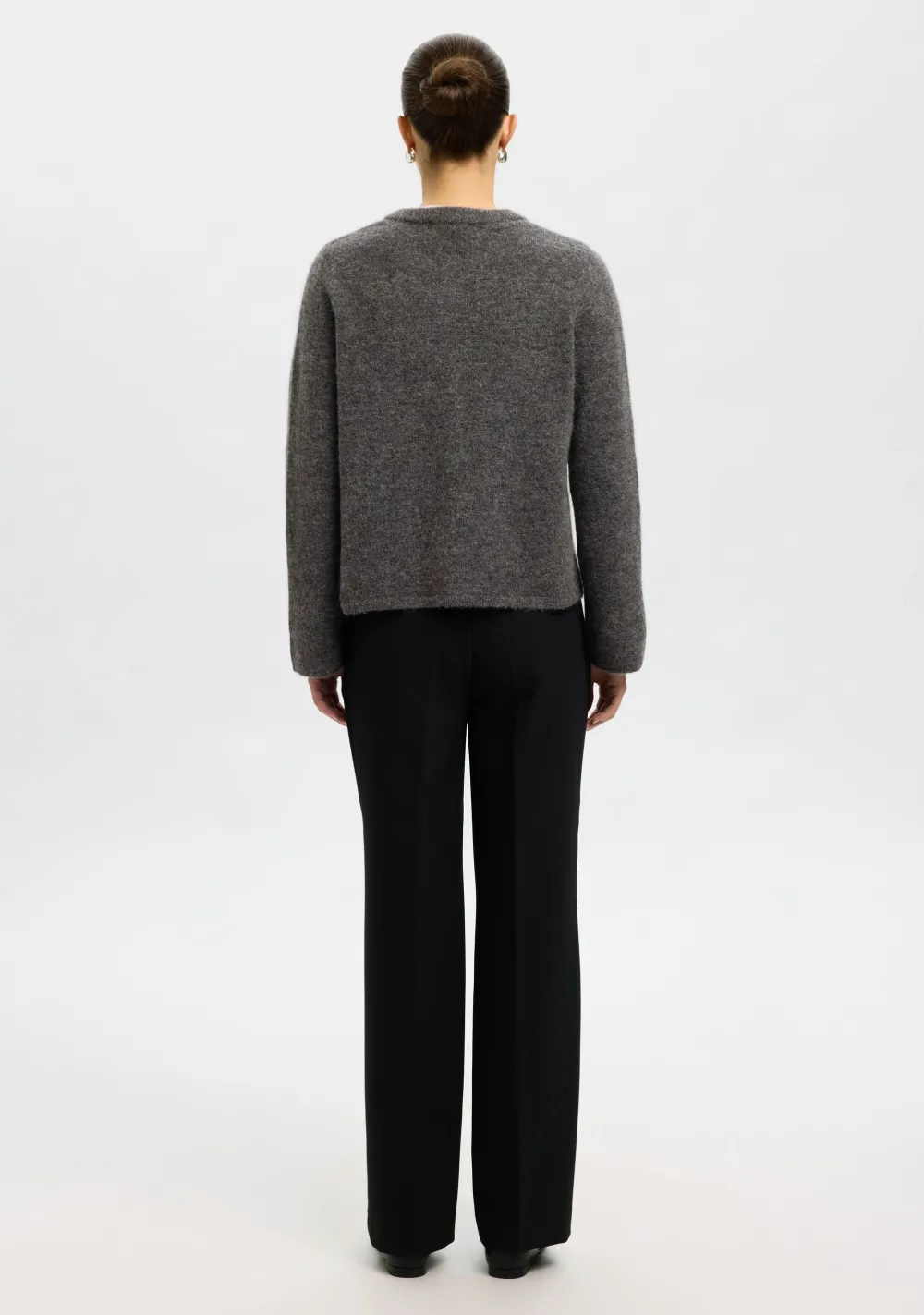 – Het model is 1.76m lang en draagt maat S
