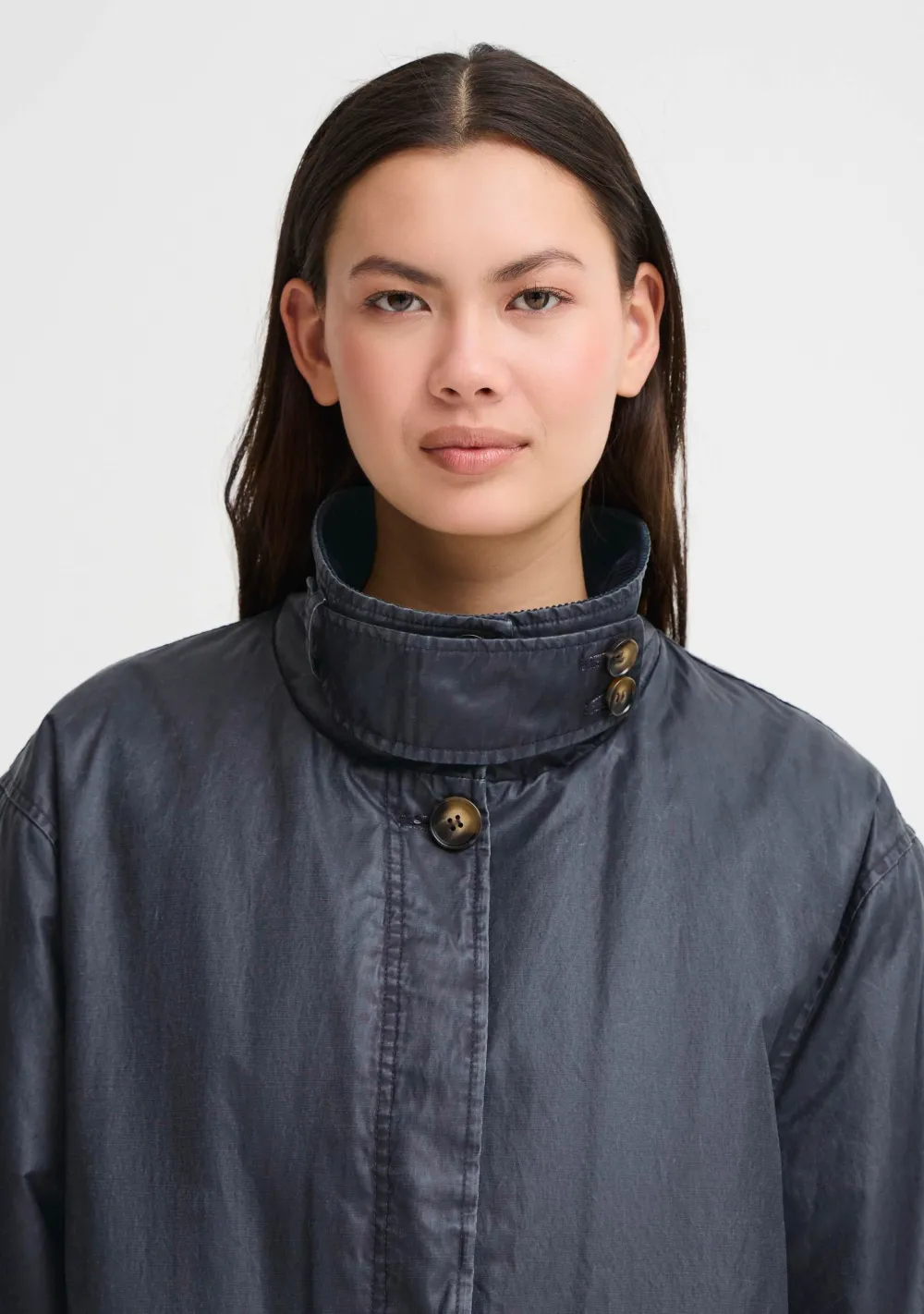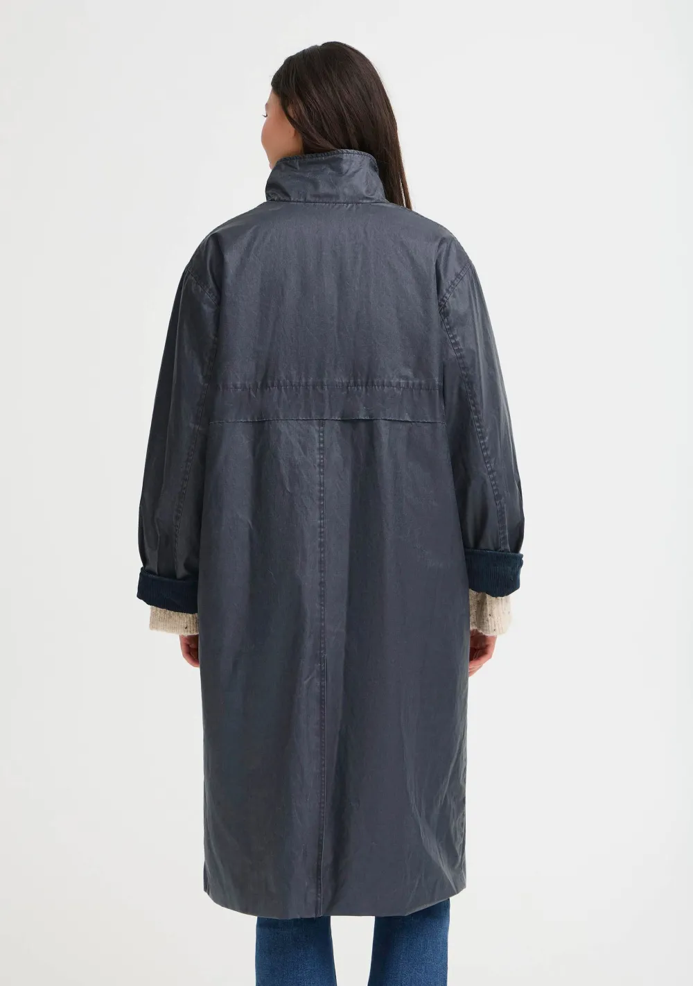 – Het model is 1.76m lang en draagt maat S